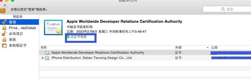 在keychain(鑰匙串訪問)中多刪了一個證書:
